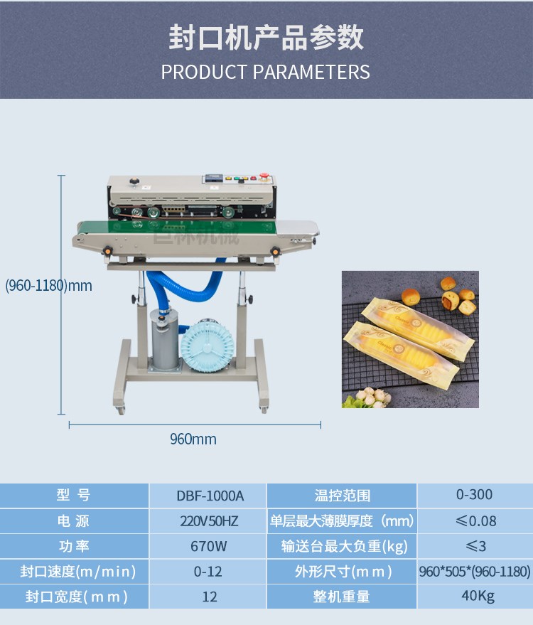 | 名 稱: | 自動充氣薄膜封口機(jī) | 型 號: | DBF-1000 |