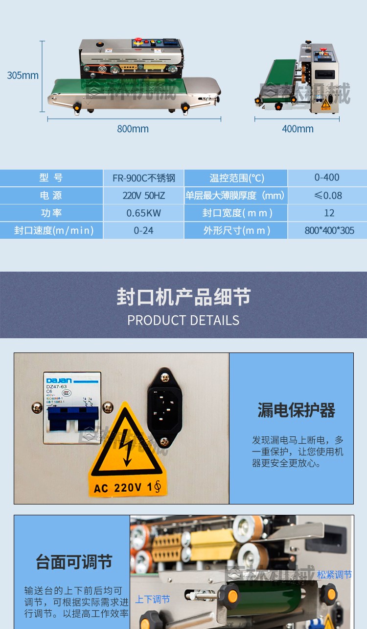 【自動(dòng)連續(xù)封口機(jī)FR-900C大電機(jī)不銹鋼】詳細(xì)信息