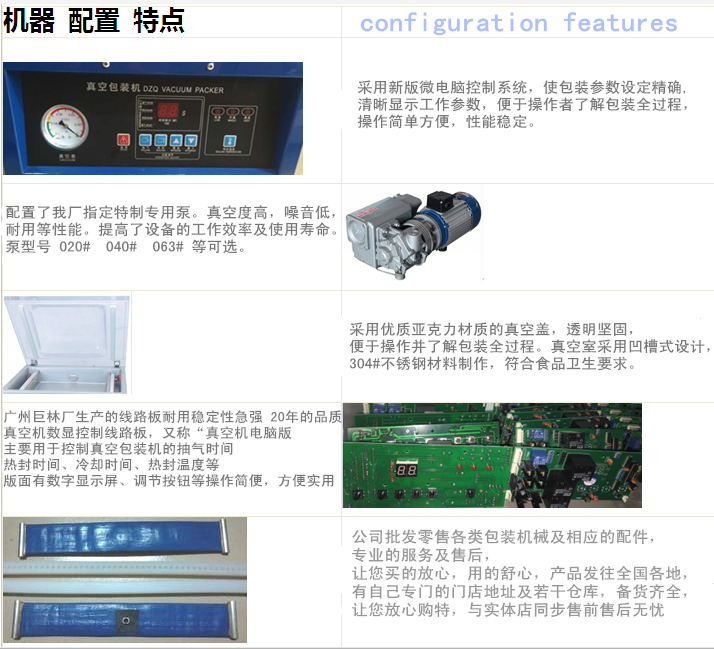 本公司擁有雄厚的技術(shù)力量,生產(chǎn)產(chǎn)品多領(lǐng)域,在真空包裝機(jī)規(guī)模最大品種最多的生產(chǎn)商。DZ系列真空機(jī)選用國(guó)內(nèi)外知名廠家,如南通、上海、德國(guó)、日本等真空泵和電器元件的不同配置。機(jī)體全不銹鋼全封閉、軸流散熱形式、耐惡劣環(huán)境長(zhǎng)時(shí)間連續(xù)使用具有高穩(wěn)定性。是目前國(guó)內(nèi)領(lǐng)先機(jī)型,可替代進(jìn)口機(jī)型。
